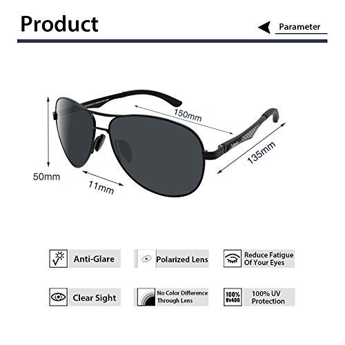 LZXC Occhiali da sole polarizzati per uomo Outdoor Sport Eyewear cerniera a molla infrangibile Telaio metallico metallizzato ultra-chiaro HD Nero Lens