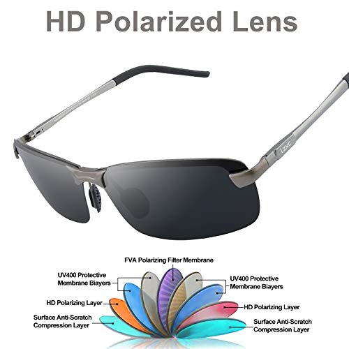 LZXC Occhiali da Sole Polarizzati da Uomo Protezione UV400 per la Guida di Pesca Golf, Montatura Grigio Metallizzato/Lente Nera