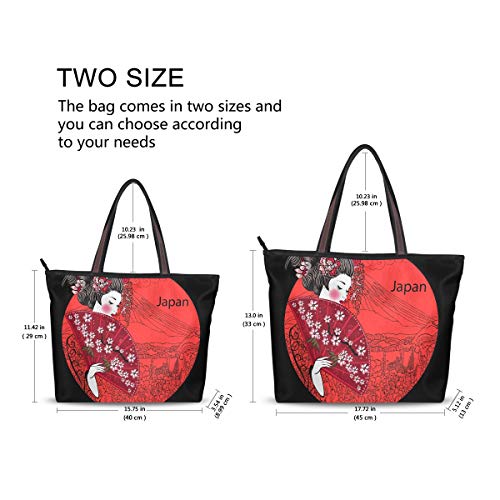 LZXO Donne Tote Borse Donne Donne Giapponesi Ciliegio Tote Tote Borsa a Tracolla Borse Con Cerniera Riutilizzabili Per Lavoro All'Aperto Viaggio Picnic Borse, Multicolore (Multicolore), Large