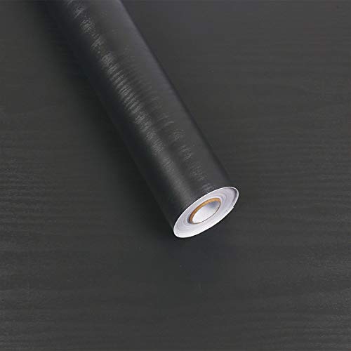 LZYMLG Carta da parati autoadesiva impermeabile in PVC, dormitorio per studenti, camera da letto, TV, parete di fondo, adesivi per venature del legno, film per la ristrutturazione di mobili nero
