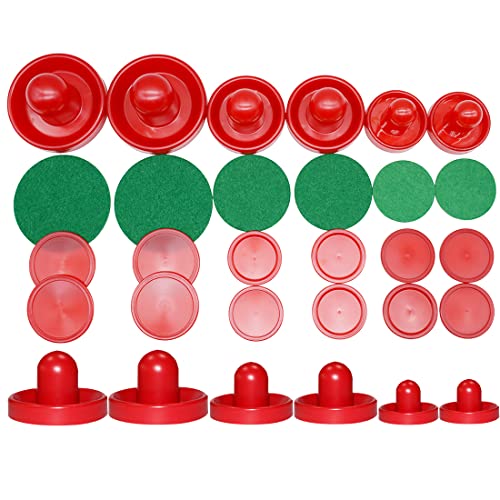 [PACCHETTO] Il pacchetto comprendeva 6 paddle pusher rossi, 12 feltro verde e 12 dischi rossi. Uno sport per il tempo libero adatto a qualsiasi casa o sala giochi.