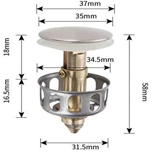 LZZZWER Filtro di Scarico antirimbalzo Universale per lavabo - Diametro 35 mm con cestello, Nuovo Tappo di Scarico per lavandino da Bagno da Cucina 2 in 1 Pop-up, Tappo per lavabo