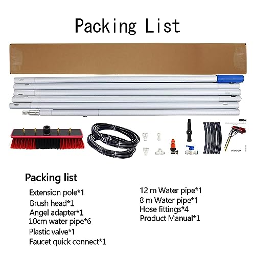 ⌛【Pxkmouy Tubo di Lunghezza 3m~15m】spazzola ad acqua per pulire fotovoltaico il kit viene fornito con un tubo da 20m, un raccordo in ottone da 0,64 cm, un separatore d'acqua e un adattatore per un facile collegamento con varie fonti d'acqua. L'acqua può essere trasferita attraverso un tubo dell'acqua che andrà nel palo e raggiungerà alla testina, garantendo una pulizia efficace.