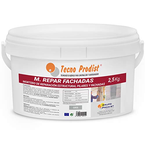 M-REPAR FACHADAS di Tecno Prodist - (2,5 Kg) - Malta per ripristino strutturale - per la riparazione di facciate, cornicioni, pilastri - malta cementizia contiene cemento, aggregati e fibre speciali