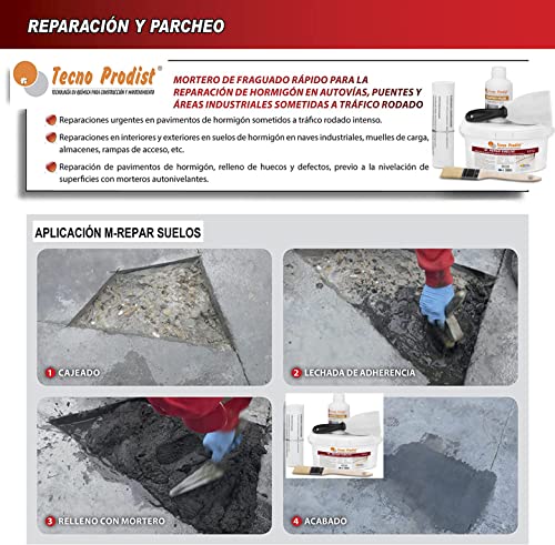 M-REPAR PAVIMENTI by Tecno Prodist - Malta per pavimenti in calcestruzzo o cemento, anche con circolazione stradale (transitabile con veicoli in 2 ore) (2,5 Kg + Kit)