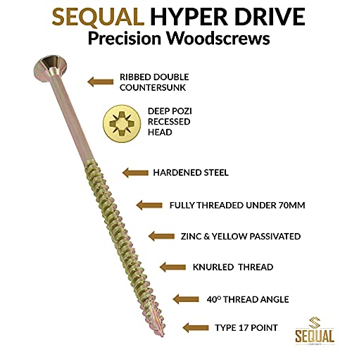 M6x80mm (100) SEQUAL Hyper Drive Viti per Legno,Testa Autosvasante per una Finitura Liscia a Filo,Set Viti con Filettatura Zigrinata per Favorire Inserimento e Tenuta,Set Viti Resistenti alla Ruggine