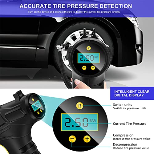 [Ampia applicazione] La pompa ad aria elettrica può essere utilizzata per pneumatici di auto, motociclette e biciclette e può anche essere utilizzata per sfere, anelli di nuoto e altri oggetti gonfiabili.Questo gonfiore portatile per pneumatici è un regalo ideale per te stesso, la famiglia o gli amici.