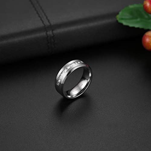 Mabohity Anello da uomo/donna in titanio con zirconi, larghezza 8 mm, anello di fidanzamento, anello dell'amicizia, matrimonio, colore argento, colore: argento, cod. MBH0100165