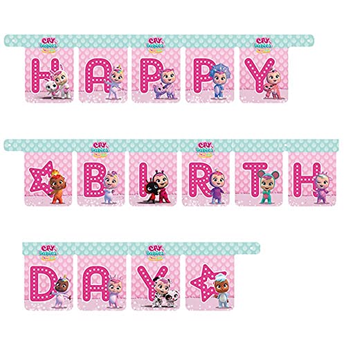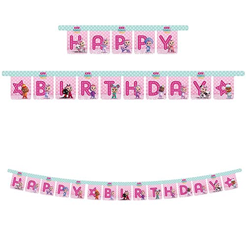 Festone ghirlanda di compleanno con personaggi Cry Babies e testo Happy Birthday