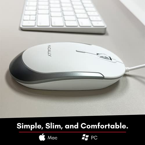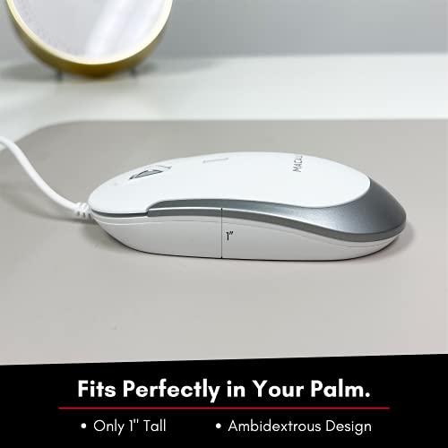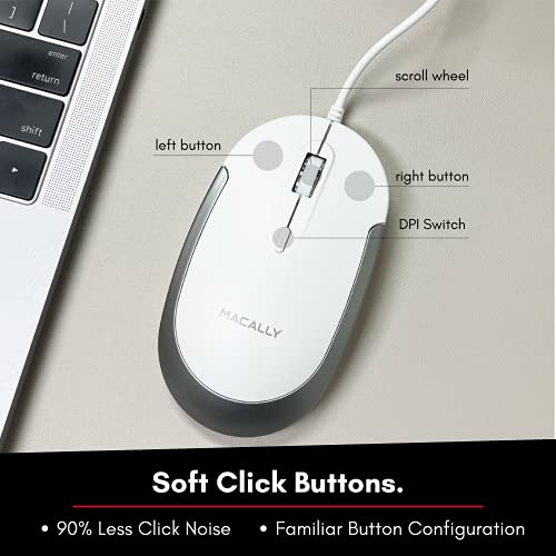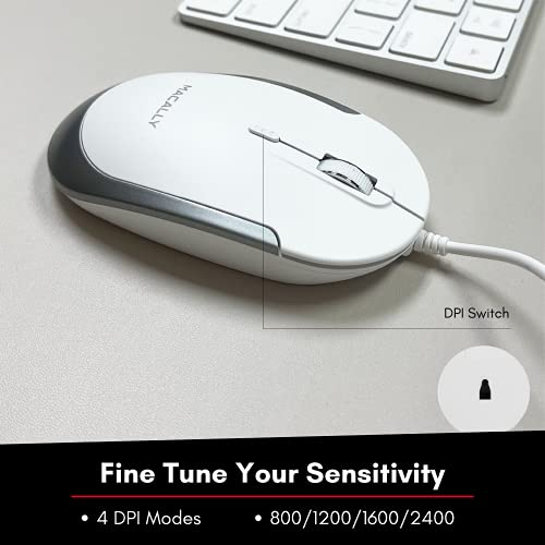 Macally Silent mouse USB-C con cavo per Apple Mac & Windows PC laptop/desktop computer | Slim & Compact con disegni e sensore ottico e interruttore, piccolo per facile viaggio (bianco)