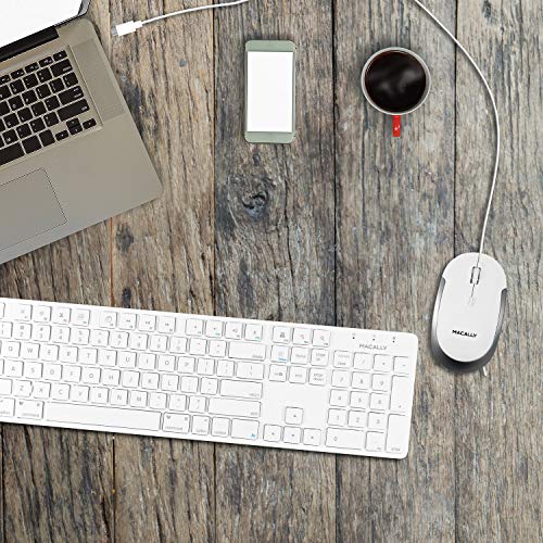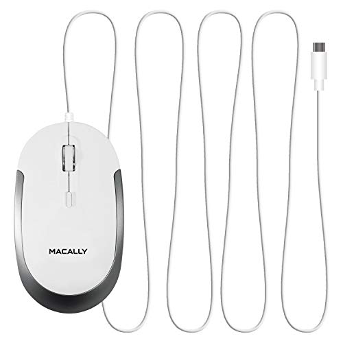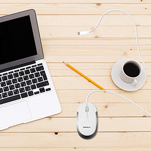 Macally UCDYNAMOUSE-W, 3-Button Optical USB-C Silent Click Mouse, White/Space Gray