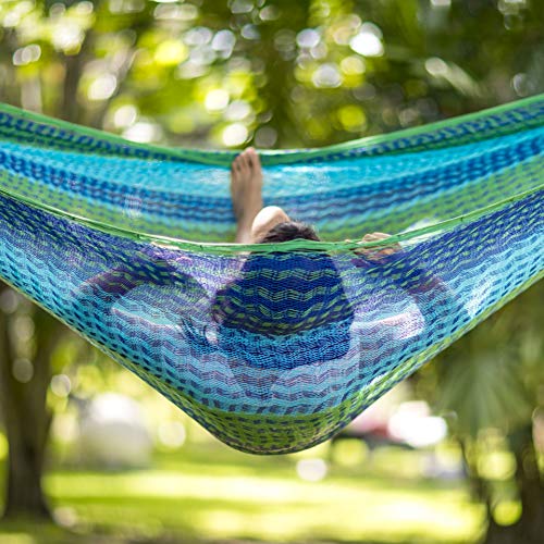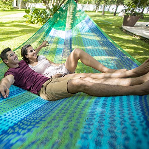 MacaMex - Amaca ma 00245, Rete Amaca Messicana Famiglia Amaca XXL 4 Persone 300 kg, 410 x 300 x 150 cm, Blu