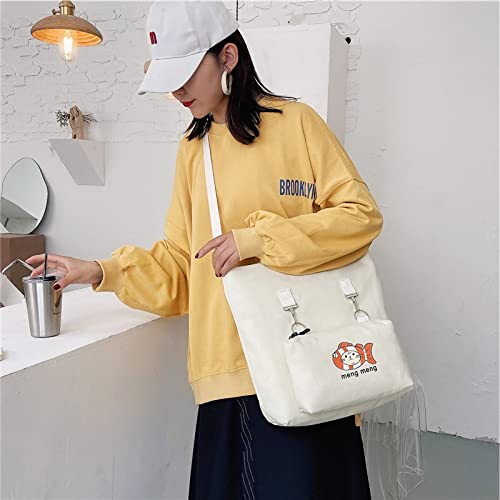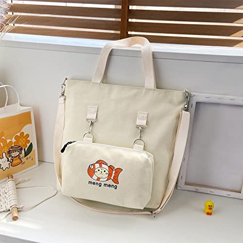 Macause Borsa a Tracolla per Studenti, borsa per scuola da donna, borsa tote in tela con borsa quadrata piccola staccabile,ragazze college per il pendolarismo, shopping, viaggi (Bianco)