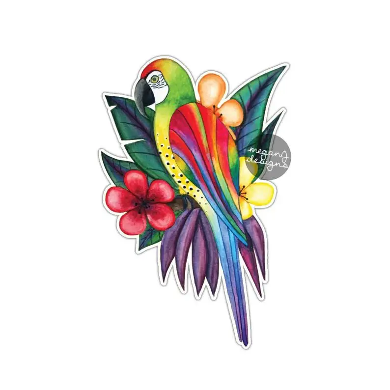 Macaw Parrot Rainforest Sticker Colorful Design Car Decal Bumper Sticker Laptop Decal Jungle Flowers Tropical Jungle