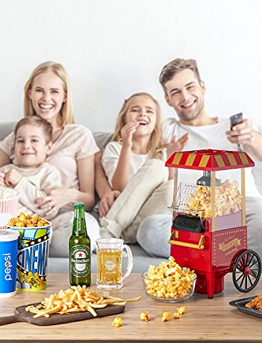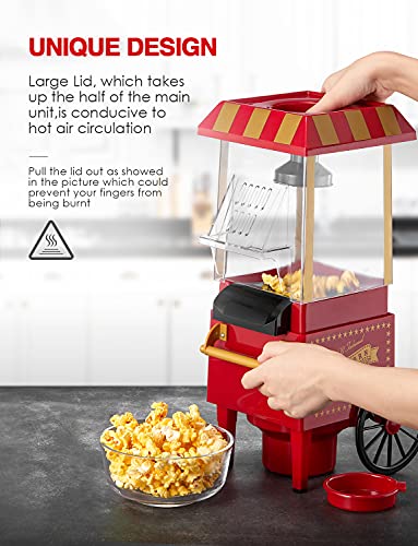 Macchina per Pop Corn, 1200W Retro Macchina Popcorn Compatta ad aria calda senza grassi, Operazione con Un Pulsante, Rosso