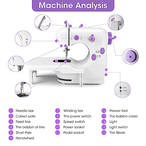 【Doppio interruttore e design a due linee】 Questa macchina da cucire unica presenta un design a due linee (linea di fondo e linea di superficie), che offre cucito di qualità per tutti i progetti. Una mini macchina da cucire è una buona scelta per cucire alcuni piccoli progetti quotidiani. Offri un'esperienza di cucito perfetta.
