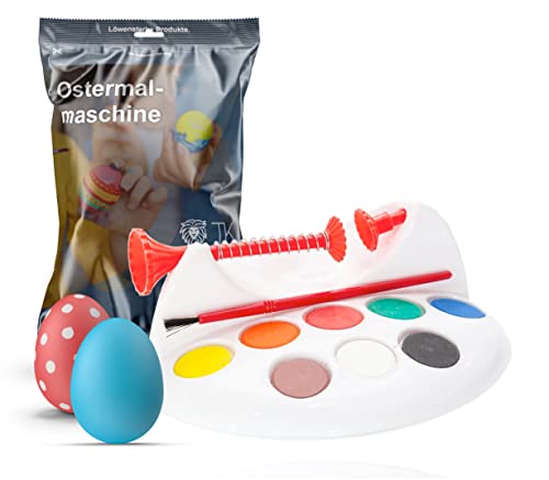 La macchina per la pittura pasquale viene fornita con un set da pittura che contiene sei diversi colori e un piccolo pennello. La vernice è atossica e lavabile, quindi può essere utilizzata in modo sicuro dai bambini. I colori sono vivaci e brillanti, così le vostre uova di Pasqua saranno splendide dopo la pittura.