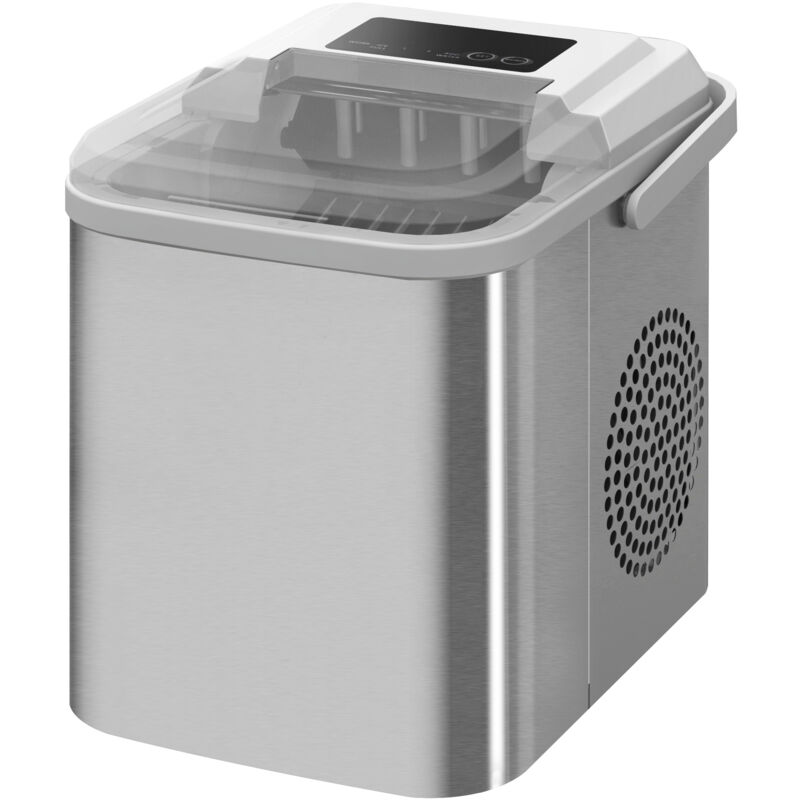 Descrizione: La nostra macchina del ghiaccio HOMCOM è la soluzione ideale, indipendentemente dallo spazio e dalle dimensioni a disposizione, per avere a disposizione tanto ghiaccio per i tuoi ritrovi in compagnia. Il design compatto e poco ingombrante la rende ideale per essere collocata praticamente ovunque, senza intralci o fastidi. Il serbatoio da 1.3 litri produce fino a 12 kg di ghiaccio ogni 24 ore, ovvero ben 9 pezzi di ghiaccio ogni 6-13 minuti. Caratteristiche: ● Gli indicatori di avvertimento segnalano quando c'è il giusto livello di ghiaccio e quando è necessario riempire l'acqua ● Con questa macchina del ghiaccio si possono scegliere cubetti di 2 dimensioni diverse ● La funzione di autopulizia della macchina per fare il ghiaccio offre una grande comodità e fa risparmiare tempo ● Funzionamento a basso rumore ● Maniglia inclusa per un facile spostamento ● Pratico foro di drenaggio sul fondo ● Montaggio richiesto Dati tecnici: ● Colore: Bianco ● Materiale: PP, rame