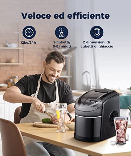 Macchina Ghiaccio Autopulente, Portatile 12kg/24ore, Compatto Piccolo c/Paletta e Cestino per Uso Domestico/Feste/Campeggio