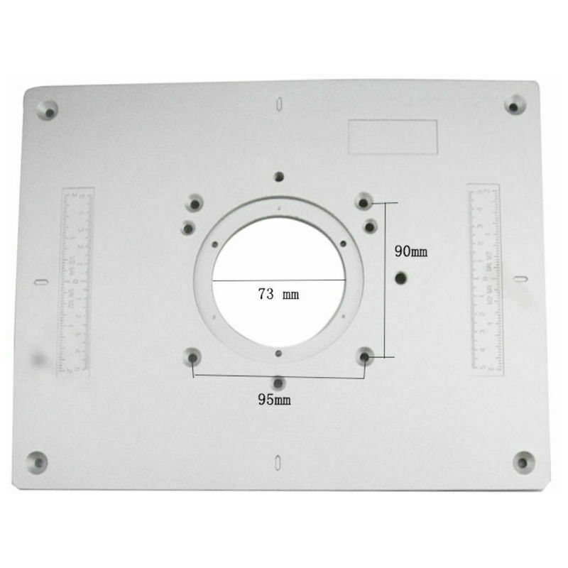 Caratteristiche: facile da usare, poco ingombrante, facile da maneggiare e utilizzare il trimmer allo stesso tempo. Chiave esagonale filettata facile da regolare in ogni angolo per aiutarti a livellare e regolare facilmente il plug-in sul ciglio della strada. Pratico anello del foro centrale per allineare la fresatrice verticale al centro del foro. È facile da usare e fa il lavoro molto bene. Realizzato con piano di lavoro in lega di alluminio e anello di inserimento del router in plastica, non facile da arrugginire, adatto per un uso prolungato. Specifiche: Materiale: lega di alluminio + anello di plastica Spessore: 9,5 mm / 0,37 pollici Diametro del foro interno: 73 mm Dimensioni dell'articolo: 300 * 235 * 9,5 mm / 11,80 * 9,25 * 0,37 pollici Peso dell'articolo: 1200 g / 42,33 once