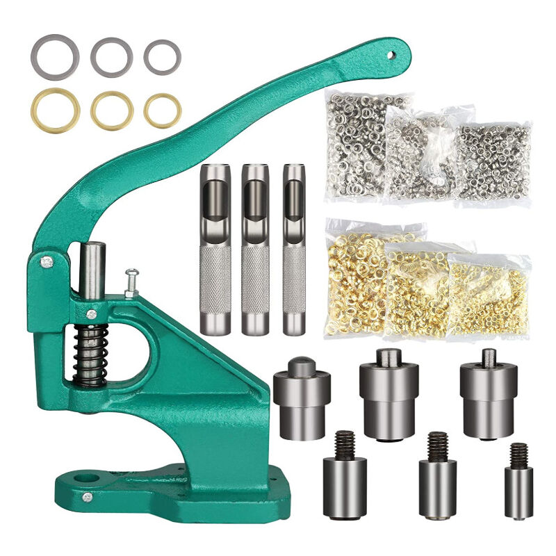 Accessori completi - Il kit include una macchina comune + 500 set di fori per l'aria con un diametro interno di 6 mm, 10 mm e 12 mm, 3 paia di stampi e tre paia di punzoni. Non solo puoi ottenere una macchina per asole industriale, ma non è necessario acquistarla separatamente e il numero di asole è elevato, che può essere utilizzato a lungo. 【Stampe sostituibili】 Considerando potresti aver bisogno di fori e dimensioni diverse, siamo dotati di 3 filiere. Puoi scegliere diversi stampi in base alle tue esigenze per facilitare il fissaggio della parete del cavo. Mantiene l'occhiello saldamente legato alla materia prima, anziché collegare i bordi. 【Funzionamento semplice】 Innanzitutto, l'installazione dello stampo sulla macchina richiede solo pochi secondi. Quindi il materiale da pressare sullo stampo non ha bisogno di essere punzonato in anticipo, l'utensile può essere utilizzato anche come punzonatrice. Infine, adagiate il garofano nello stampo e premete con il manico lungo. Comoda e