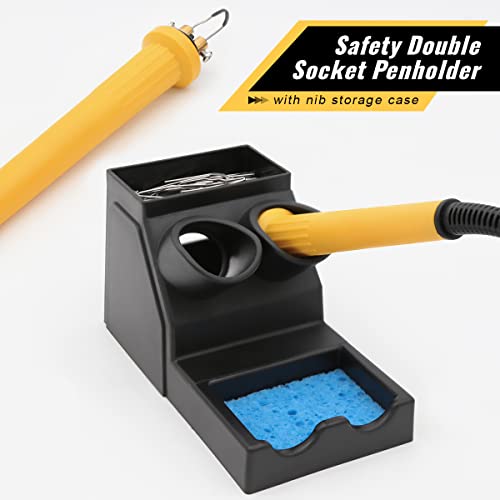 【Temperatura regolabile】 Ruota la manopola della temperatura per regolare la temperatura del kit pirografo per intaglio del legno nell'intervallo 0-700 ° C. Il kit pirografo per intaglio del legno può essere riscaldato rapidamente alla temperatura desiderata entro 20 secondi. Non impostare la temperatura troppo alta per molto tempo per evitare danni al pennino