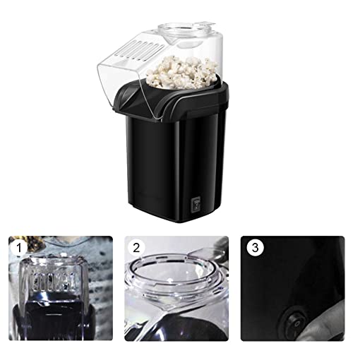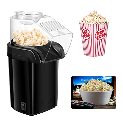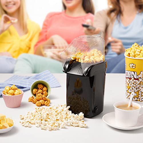 Macchina per Popcorn,1200W Popcorn Popper Compatta ad Aria Calda Senza Olio e Grassi, Macchina Pop Corn con Design a Bocca Larga, Include Misurino e Coperchio Rimovibile (Nero)