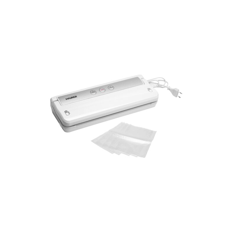 Sistema di chiusura facile che funziona con una leggera pressione da entrambi i lati - Sigilla sacchetti fino a 30 cm. - Indicazioni led: rosso sigilla verde sottovuoto - Sigilla in pochi secondi - Pressione sottovuoto: -0,60-0,80 bar - Vano sottostante per riporre il cavo di alimentazione - Design compatto - Dimensione prodotto: 376x142x72 cm. - Inclusi nella confezione 5 sacchetti 20x30 cm., spessore 0,18 mm.