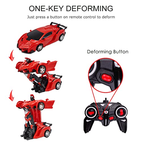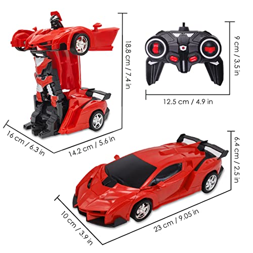Pup Go 2 in 1 Macchina Telecomandata Robot Transformers Giocattolo per Bambini, Ricaricabile 360° Rotante Acrobazia con Suono e Luci, Compleanno Regali per Ragazzi Ragazze 3-12 Anni (Rosso)
