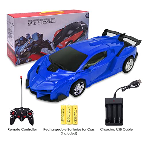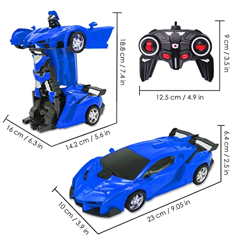 Pup Go 2 in 1 Macchina Telecomandata Robot Transformers Giocattolo per Bambini, Ricaricabile 360° Rotante Acrobazia con Suono e Luci, Compleanno Regali per Ragazzi Ragazze 3-12 Anni (Blu)