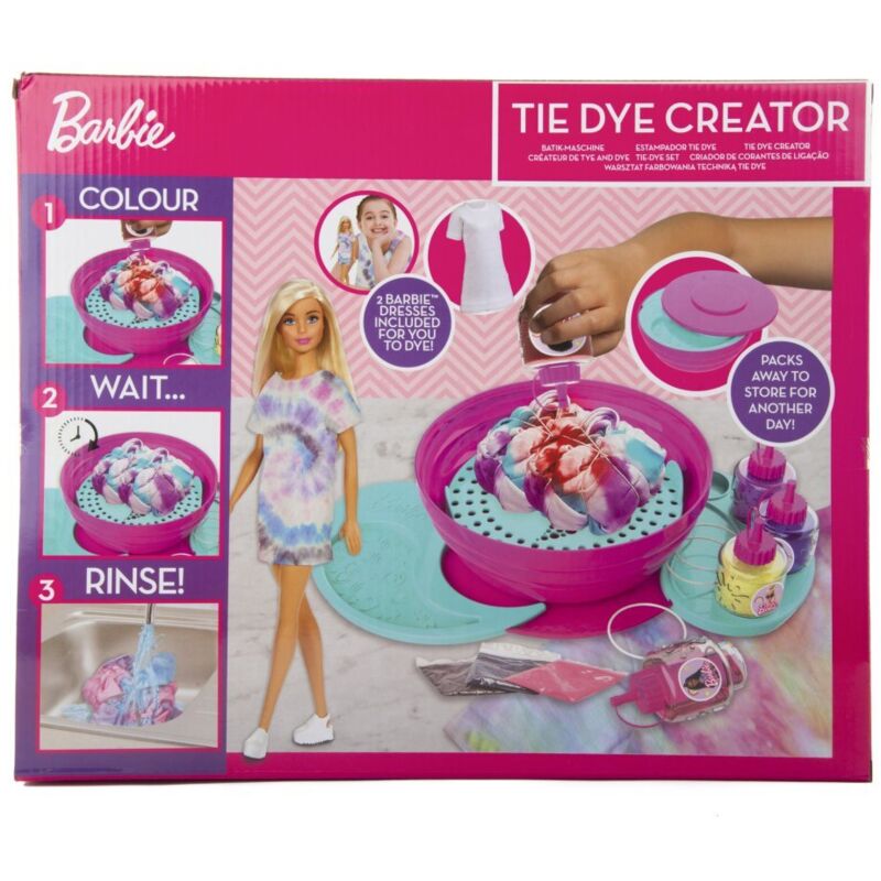 Con questa Barbie Tie Dye Machine with Pop, le fashioniste possono tingere i propri vestiti con divertenti colori pastello. Con gli elastici è possibile realizzare vari motivi. Include bambola Barbie, 2 vestiti, macchina Tie Dye, vernice ed elastici. Adatto a bambini dai 5 anni.