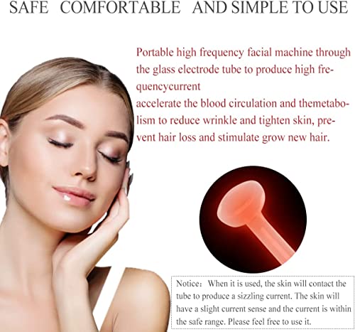CALDO PROMEMORIA — La macchina facciale genera corrente ad alta frequenza attraverso il tubo dell'elettrodo di vetro. Quando viene azionata, la bacchetta facciale ad alta frequenza produrrà una corrente sfrigolante quando il tubo viene a contatto con la pelle. la corrente è all'interno dell'intervallo di sicurezza, Sentiti libero di utilizzarlo. si consiglia di mettere a contatto la pelle con il tubo dell'elettrodo prima di accendere la macchina, il che può ridurre il senso di corrente.
