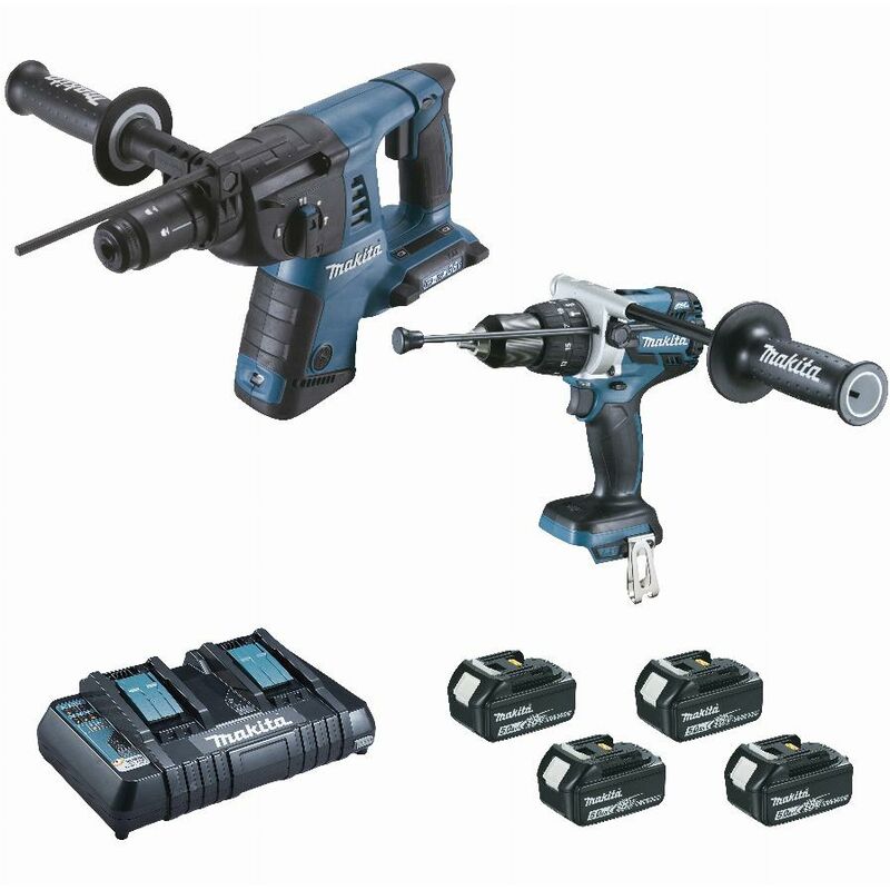 18 V, 5 Ah, batterie agli ioni di litio caricate in soli 45 minuti Doppio caricatore rapido: carica 2 batterie da 5 Ah contemporaneamente in 45 minuti. DHP481 - Avvitatore a impulsi Ø 13 mm Motore senza carbone: potente, efficiente, compatto e leggero Dotato di una lunga impugnatura per lavorare in sicurezza La tecnologia XPT limita le infiltrazioni di acqua e polvere Regolazione precisa della coppia in 21 posizioni + posizione di foratura + posizione di percussione Indicatore LED del livello di carica della batteria DHR264 - Trapano a percussione SDS-Plus da 26 mm La tecnologia XPT limita le infiltrazioni di acqua e polvere Limitatore di coppia per proteggere il motore e l'utente in caso di blocco 36 V alimentato da 2 batterie da 18 V: 2 x BL1815N (1,5 Ah), 2 x BL1830 (3 Ah) o 2 x BL1840 (4 Ah) Mandrino intercambiabile a bloccaggio rapido (SDS-Plus o autoserrante) Indicatori del livello di carica della batteria