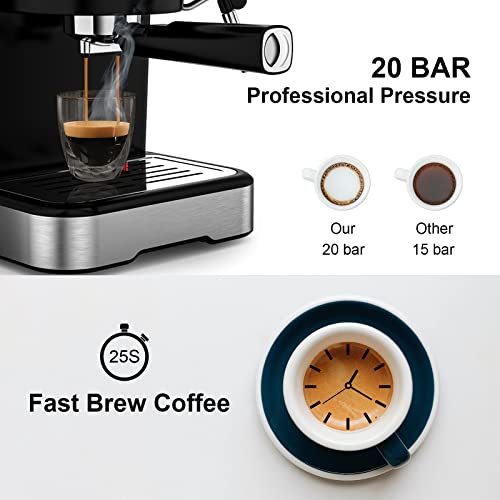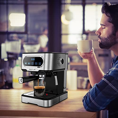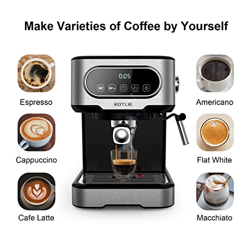 Macchinetta Caffe Espresso, 1100W KOTLIE Macchina Caffe con Tubo Vapore Rotante, Alta Pressione 20 Bar Macchina Caffè, 2 Filtri