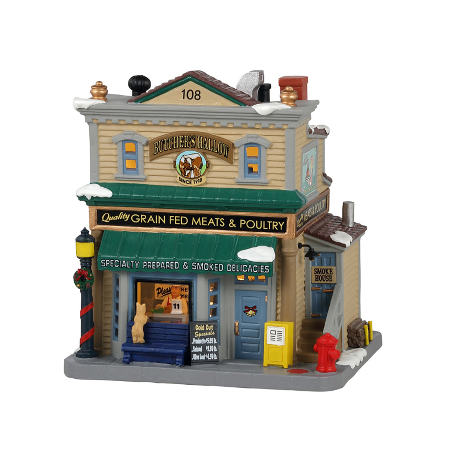 Crea il tuo villaggio di Natale con le decorazioni Lemax e apri le porte di casa tua alla magia e alle musiche del Natale. Finemente decorate e curate nei minimi dettagli, le decorazioni natalizie Lemax contribuiranno a rendere speciale la tua casa, tra la gioia di grandi e piccini. Il macellaio del villaggio ti aspetta in questa rifinita bottega, perfetta per un tocco contadino nel tuo villaggio di Natale. Con illuminazione, si alimenta con 3 batterie AA (non incluse) o tramite presa di corrente. Collezione: Caddington Village. Dimensioni: 16x13,4x17,3 cm.