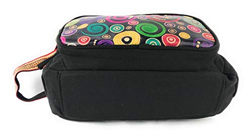Macha Borsa in cotone etnico con stampe colorate e inserti in pelle, borsa a tracolla in cotone e pelle per donna Etnica indiana colorata (Nero)