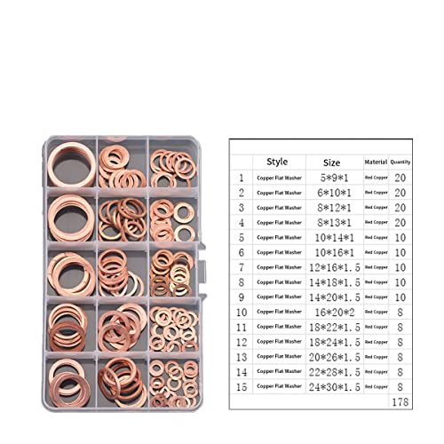 MACHSWON 178 PZ Rame Rosso Rondella Piana Set M5-M24 Guarnizione Piana Rondella Kit Vite di Fissaggio Hardware Assortimento Accessori