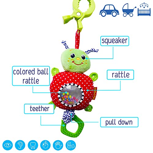 MACIK Coccinella- Giocattoli da Appendere per Bambini + Massaggiagengive + Sonaglio + Vibrazione Jiggle- Giocattoli per passeggini - Giocattoli per Bambini 6-12 Mesi - Giocattoli per seggiolini Auto
