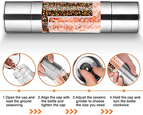 Macina Sale Pepe 2 in 1, Macina Pepe in Acciaio Inox, con Anima in Ceramica Regolabile Macinapepe, Perfetta Conservazione di Sale e Pepe, Sale Marino, Pepe in Grani