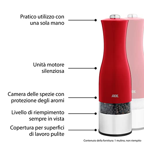 Macina sale e pepe elettrico ADE KG1900-2 regolabile in continuo, macinino in ceramica, macina pepe elettrico, macina spezie, set macina sale e pepe macina spezie rosso