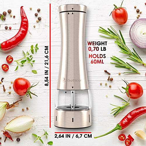 Macina sale e pepe elettrico SET di 2 pezzi con supporto - Mulino per il pepe in grani - Macinatura Regolabile per sale grosso da cucina - Spezie - Himalaya - Sale maldon