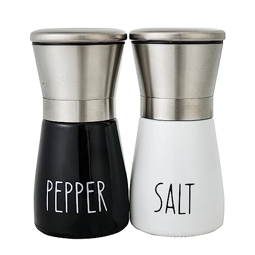 Set macina sale e pepe 2 pezzi, set macina sale e pepe originale in bianco e nero - Macina sale marino regolabile e macina pepe - Macina sale e pepe in acciaio inossidabile e vetro