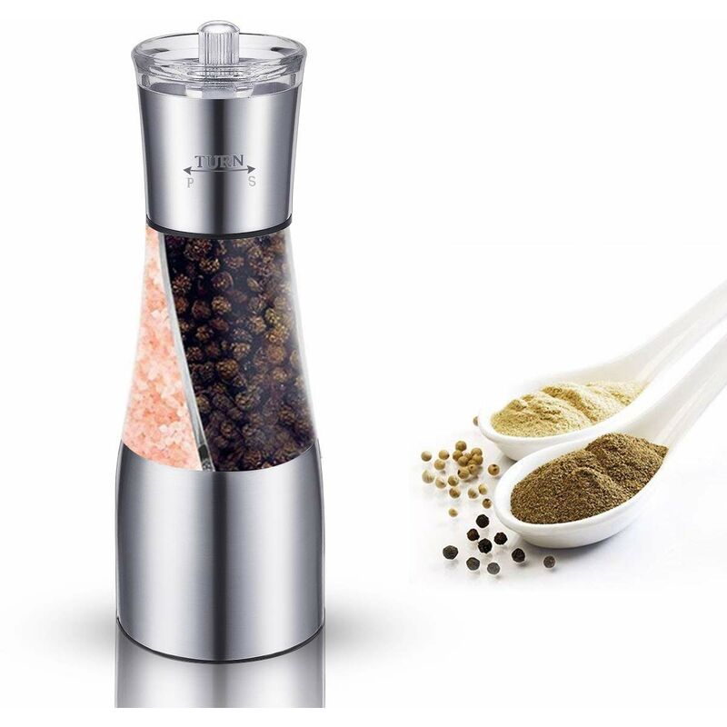 Colore come mostrato Dimensioni: 6,6*19,5 cm Peso: 140 g 【Macina sale e pepe 2 in 1】: Il macinasale e pepe 2 in 1 è adatto come macinaspezie o macinapepe, può macinare facilmente sale marino, sale dell'Himalaya, sale minerale, pepe bianco e mix di pepe bianco, ecc. Rendi la tua cucina creativa più deliziosa! Due dispositivi spaziali indipendenti: Il nostro macinapepe può essere riempito con due gusti diversi, come pepe e sale, ognuno dei quali conserva un aroma unico che non persiste. 【Aroma completo ed esperienza di macinazione di prima classe】: Il nostro macinapepe offre un aroma completo e un'esperienza di macinazione di prima classe. Realizzati in acciaio inossidabile e ceramica di alta qualità, i macinasale e pepe sono inalterabili, durevoli e sicuri, pur preservando la freschezza e il sapore delle spezie. 【Condimento regolabile】: Effetto di macinazione perfetto: velocità di macinazione, taglio preciso delle spezie di macinazione. Puoi facilmente regolare la dimensione delle