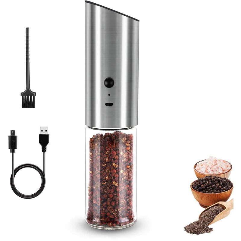 Il nostro ultimo set di macinini per sale o pepe ricaricabili utilizza una tecnologia di ricarica avanzata. Puoi scegliere lo spessore da Super Fine a Grosso. Il kit macina sale e pepe può essere facilmente regolato ruotando il meccanismo a manopola regolabile situato sulla parte superiore del macina. Dopodiché, basta premere il pulsante dell'impostazione preferita per ottenere il pepe o il sale di cui hai bisogno in un secondo. Funzionamento con una sola mano, un pulsante controlla l'intero macinino (se calpesti accidentalmente il macinino per evitare il consumo di energia), inclina semplicemente il macinino in un punto al di sotto dell'orizzontale e puoi usarne due automaticamente. Le mani iniziarono a macinare.