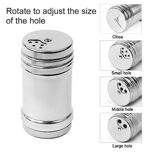 Foro Diverso: Il barattolo delle spezie è un design con tappo a vite rotante, il tappo rotante può regolare tre tipi di aperture, rispettivamente piccolo foro, foro centrale, foro grande, vicino, per soddisfare le diverse esigenze. Il barattolo delle spezie può essere ruotato e regolato in uno stato sigillato quando non in uso, il che mantiene la fragranza fresca, ha buone prestazioni di tenuta.