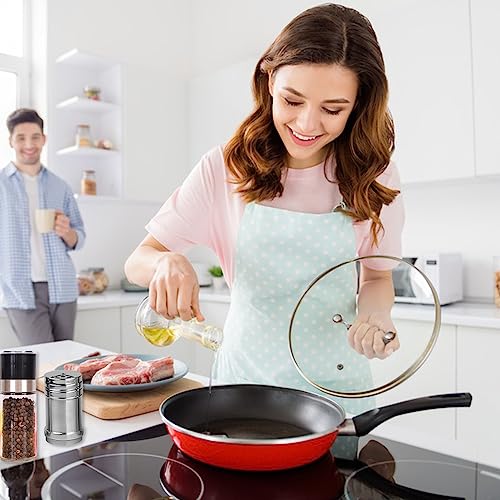 Materiale di Qualità: La parte superiore del macinino per condimento è realizzata in acciaio inossidabile di qualità e il corpo in vetro è realizzato in solido trasparente che facilita la distinzione e l'aggiunta di materiali, la superficie è liscia e delicata, robusta e resistente. La bottiglia di condimento è realizzata in acciaio inossidabile di qualità acciaio, è resistente e facile da pulire, non facile da arrugginire.