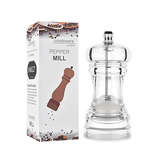Materiale Acrilico: La smerigliatrice è realizzata in materiale acrilico, non contiene BPA, ha un'elevata durezza e non si spezza o si deforma. Il design trasparente consente di controllare la capacità del pepe in qualsiasi momento.