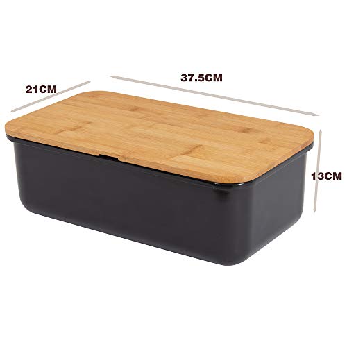 MACK - Ampio portapane Box in melamina | Contenitore per Il Pane con Pratico Coperchio in bambù Come Tagliere in Nero