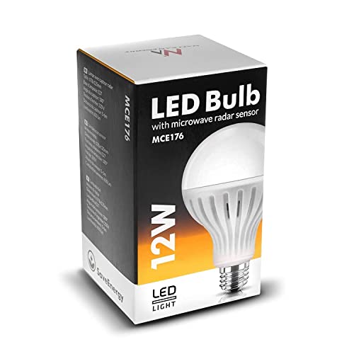 Maclean MCE176 - Lampadina LED con rilevatore di Movimento microonde, E27, 12 W, Luce Bianca Fredda