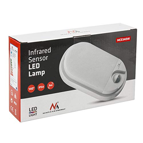 Maclean MCE340 Lampada LED con Sensore di Movimento Automatico a Infrarossi Risparmio Energetico Adatto per Uso Esterno e Interno (Bianco)
